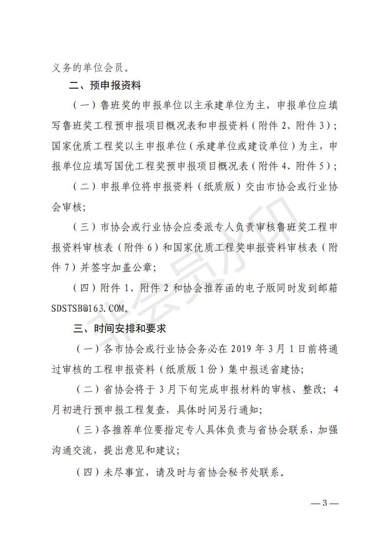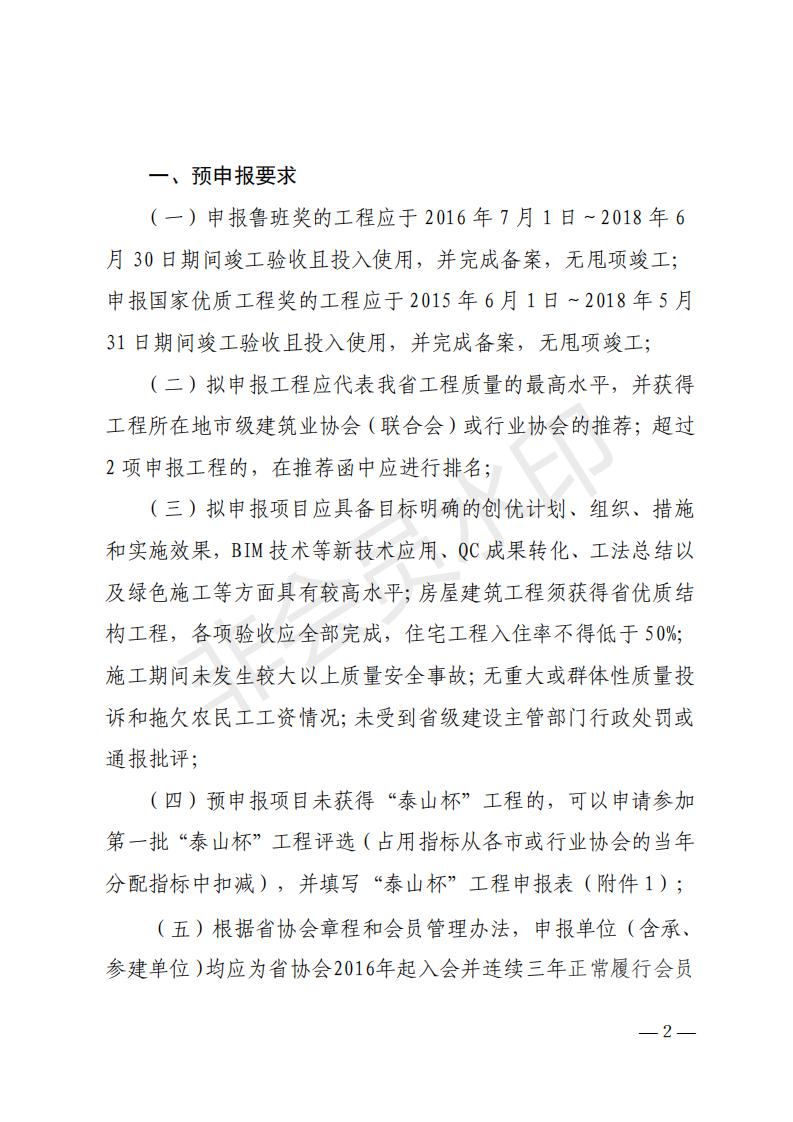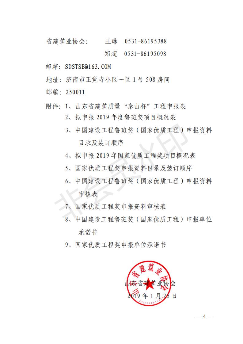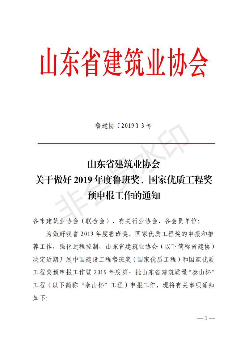 山东省建筑业协会 关于做好2019年度鲁班奖、国家优质工程奖 预申报工作的通知