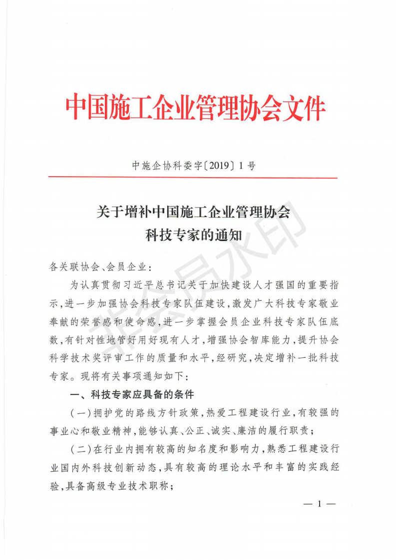 关于转发《关于增补中国施工企业管理协会科技专家的通知》的通知
