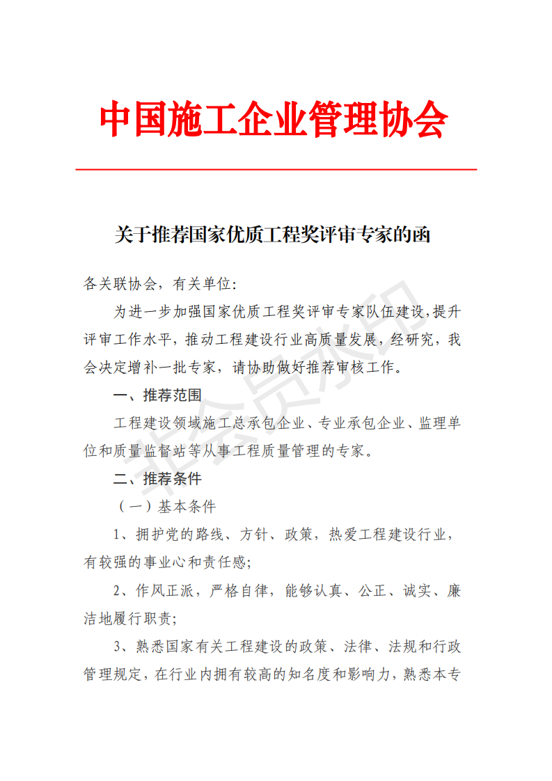 转发《关于推荐国家优质工程奖评审专家的函》的通知