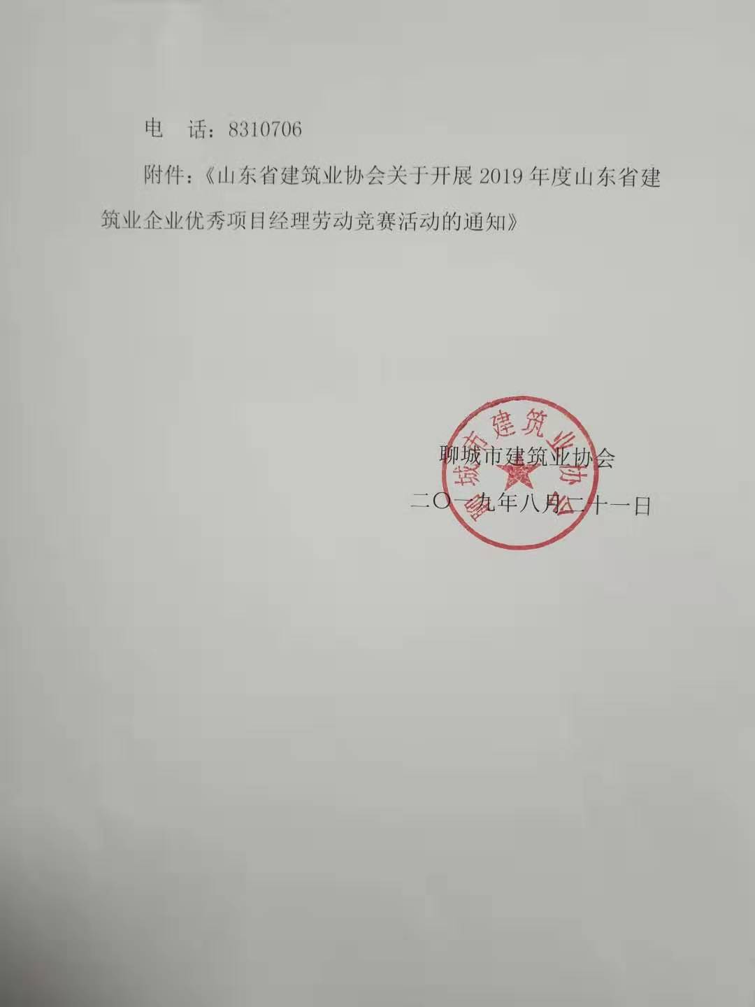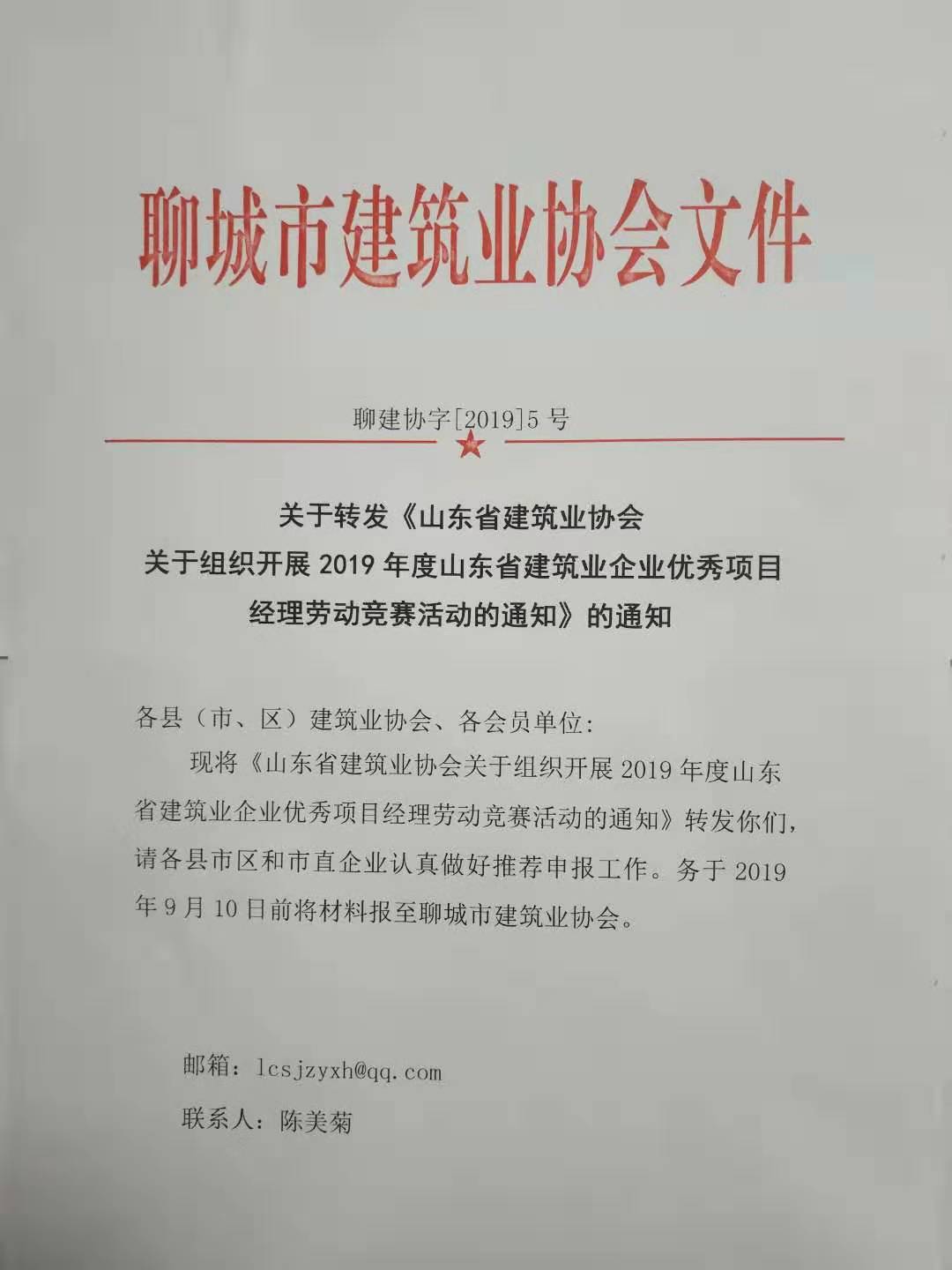 关于转发《山东省建筑业协会 关于组织开展 2019 年度山东省建筑业企业优秀项目 经理劳动竞赛活动的通知》的通知