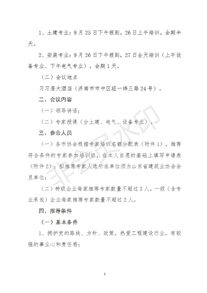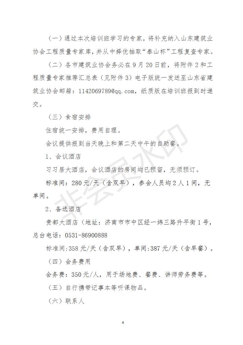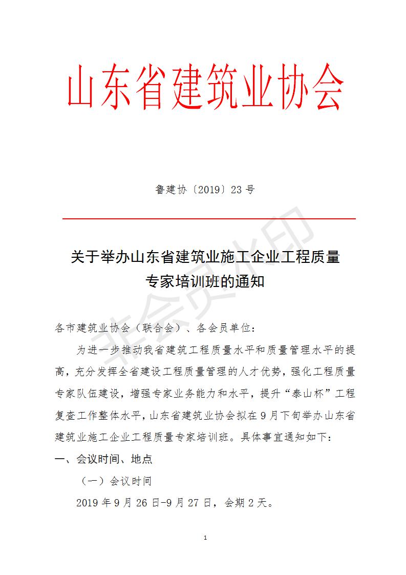 关于举办山东省建筑业施工企业工程质量                                     专家培训班的通知