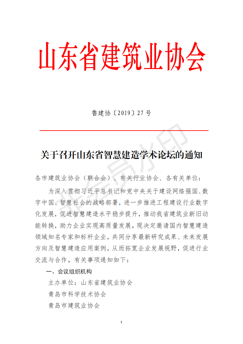 转发山东省建筑业协会《关于召开山东省智慧建造学术论坛的通知》