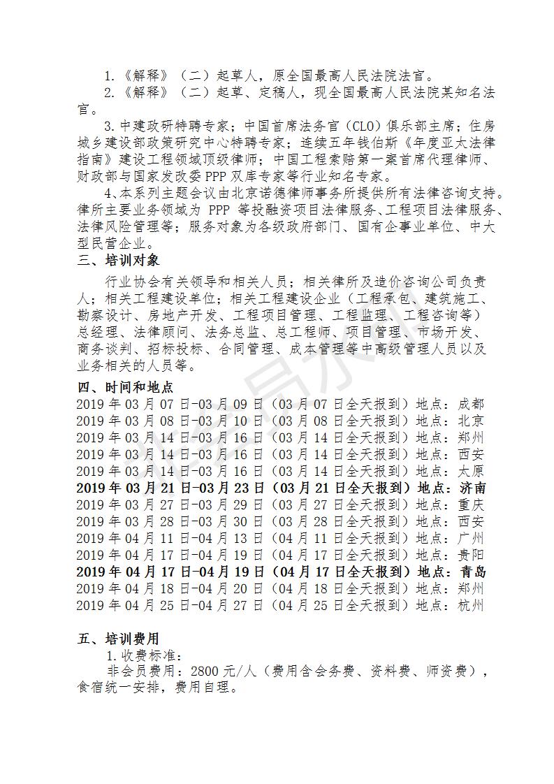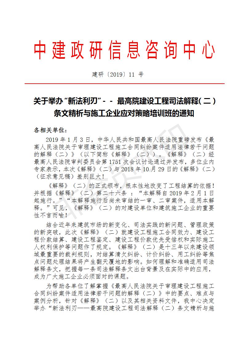 关于举办“新法利刃”—最高院建设工程司法解释(二) 条文精析与施工企业应对策略培训班的通知