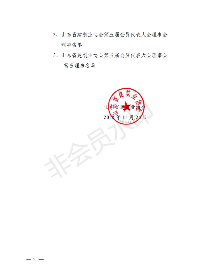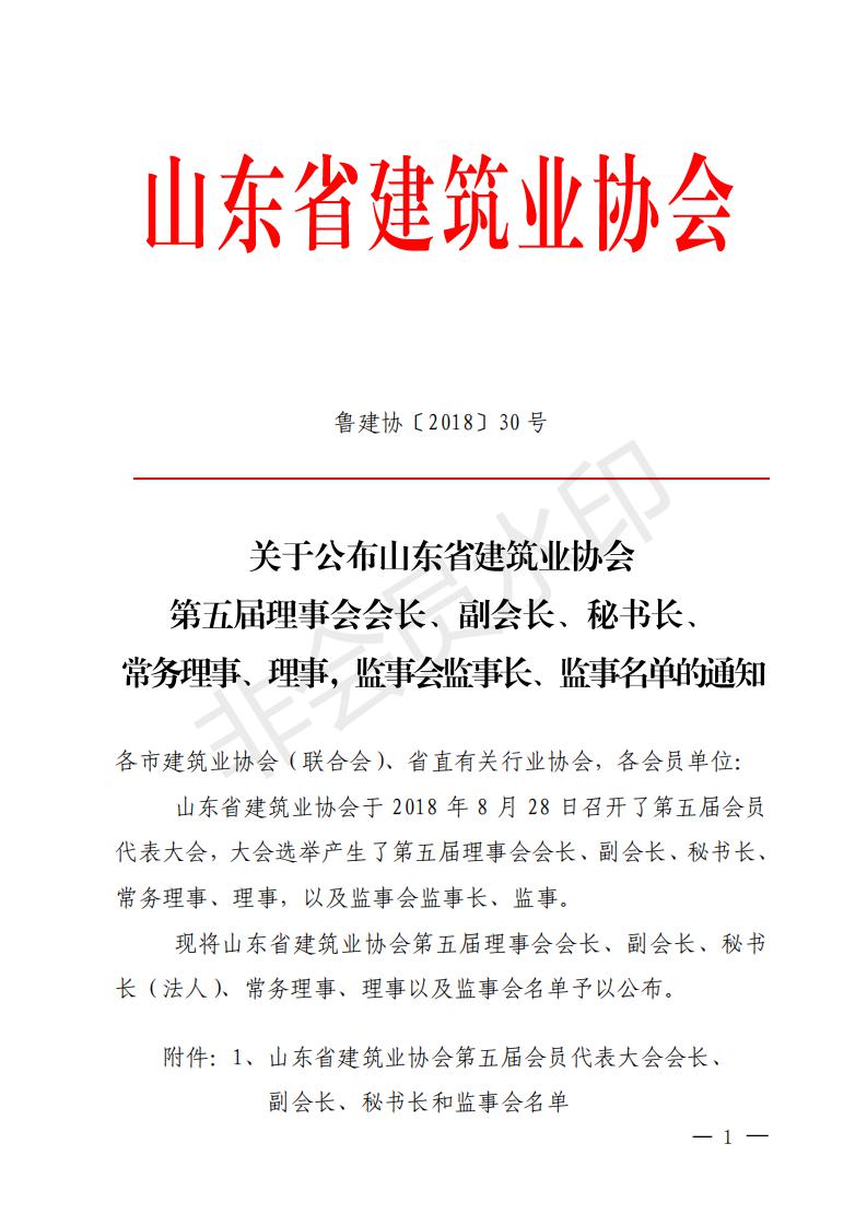 关于公布山东省建筑业协会第五届理事会会长、 副会长、秘书长、常务理事、理事,监事会监事长、监事名单的通知